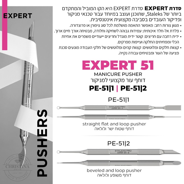 דוחף עור למניקור PE-51/1 מסדרת Expert המקצועית של המותג Staleks Pro - סדרת כלים לטכנאיות מניקור ופדיקור.