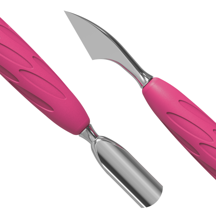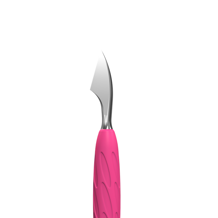 המתכת המדויקת של Staleks Pro פוגשת את ידית הסיליקון הוורודה והרכה, שהופכת כל תנועה לשליטה מוחלטת ומפחיתה עייפות ביד לאורך כל יום העבודה.